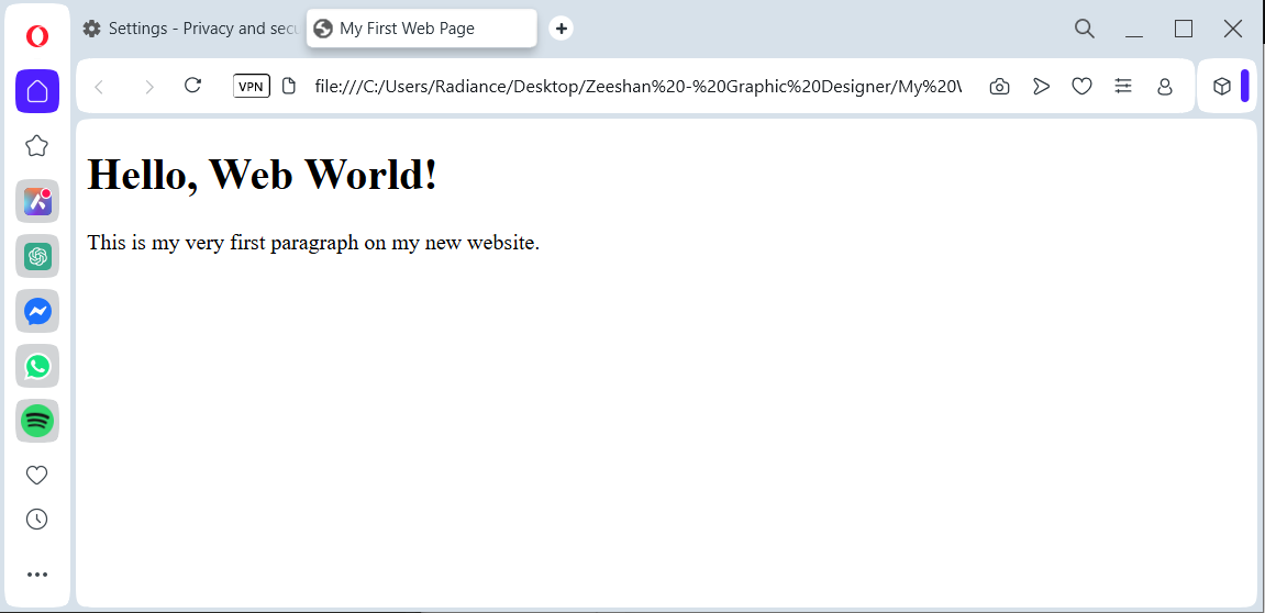 index.htmlfile.Double-click the file! It should automatically open in your default web browser, and you'll see "Hello, Web World!" and your paragraph!